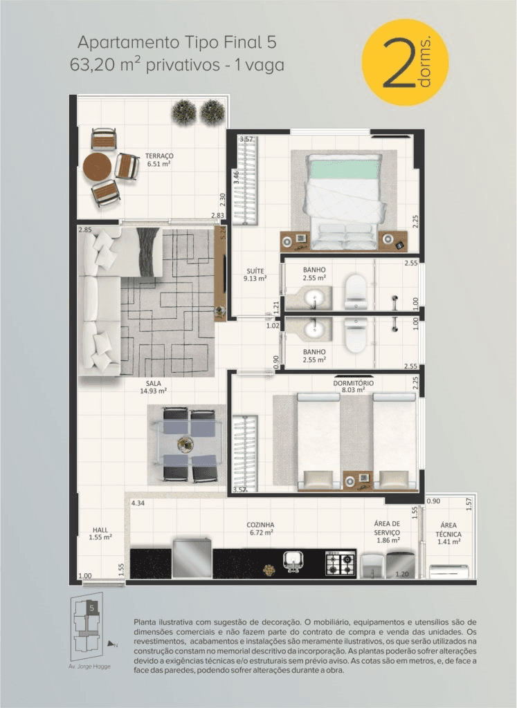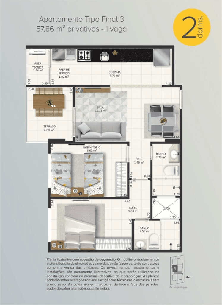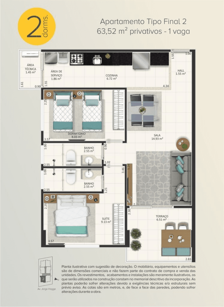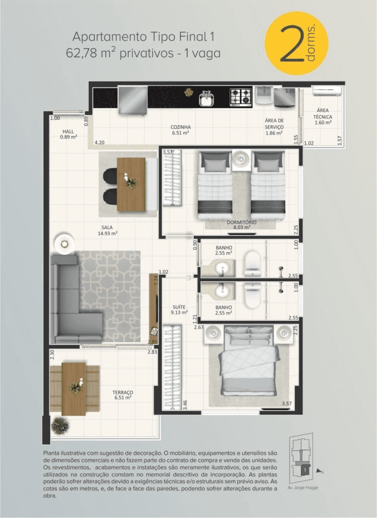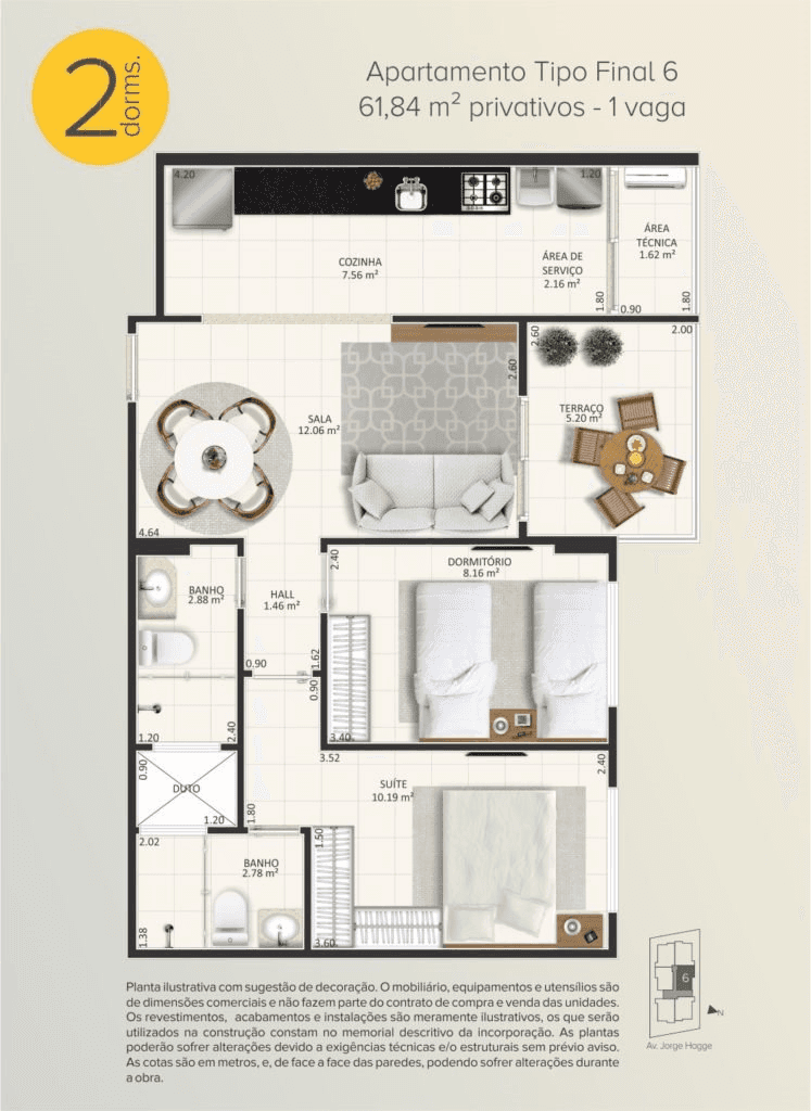✔ 2 dormitórios com suite